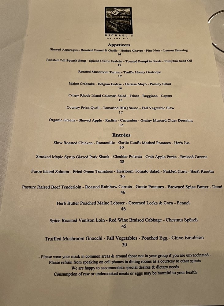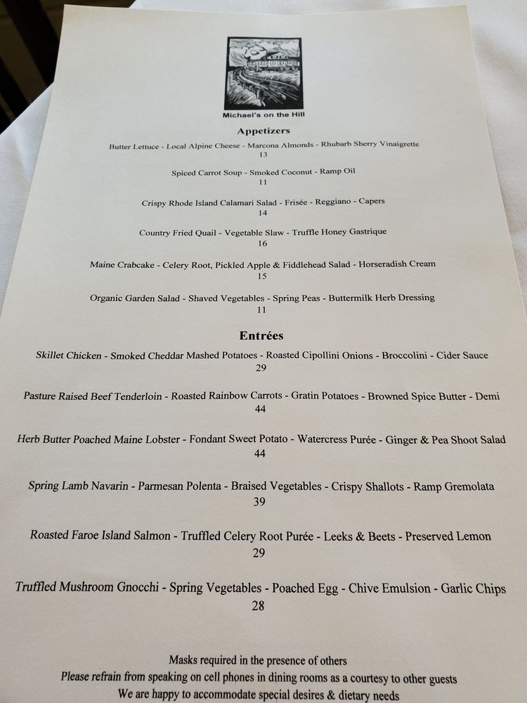 Welcome to Michael's on the Hill, a culinary treasure located in the picturesque Waterbury Center, Vermont. Renowned for its new American cuisine, the menu reflects a perfect fusion of creativity and tradition, showcasing fresh, high-quality ingredients that elevate each dish.